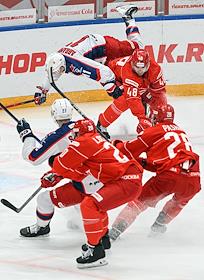 Континентальная Хоккейная Лига (КХЛ). Матч между командами "Спартак" (Москва) - ЦСКА (Москва) на…