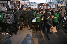 Праздничные мероприятия в день Ураза-Байрам. Мусульмане у Московской Соборной мечети.