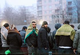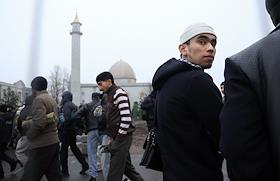 Празднование Ураза-байрам у Квартальной мечети им. Джафара Насибулловича в Санкт-Петербурге.