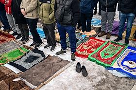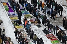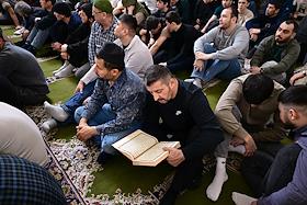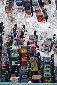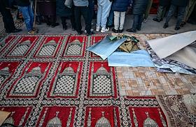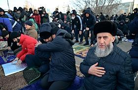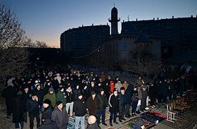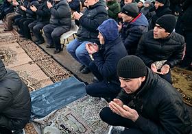 Жанровые фотографии. Празднование Ураза-Байрама. Верующие во время богослужения в день праздника Ураза-байрам в Соборной мечети в Красноярске.