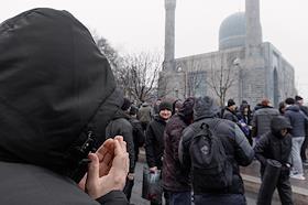 Праздничные мероприятия в день Ураза-Байрам. Верующие у Санкт-Петербургской Соборной мечети.