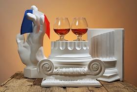 Жанровая фотография. Коньяк в бокалах среди гипсовых фигур.