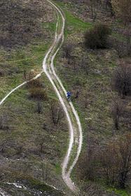 Виды Воронежской области. Жанровая фотография. Мужчина на спортивном мотоцикле едет по проселочной…