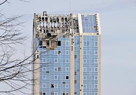 Жанровая фотография. Ситуация в зоне СВО. Здание разбитой гостиницы "Виктория" после обстрела.