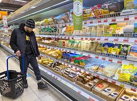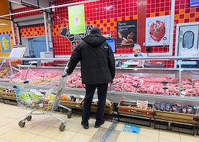 Магазин сети гипермаркетов "Лента". Жанровая фотография. Покупатель в торговом зале магазина.