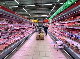 Магазин сети гипермаркетов "Лента". Жанровая фотография. Покупатели в торговом зале магазина.