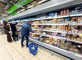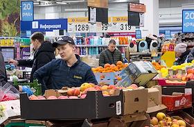 Магазин сети гипермаркетов "Лента". Жанровая фотография. Покупатели и сотрудник гипермаркета в…