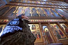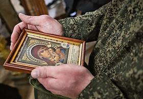 Свято-Успенский Николаевский женский монастырь. Военнослужащий с иконой в храме.