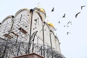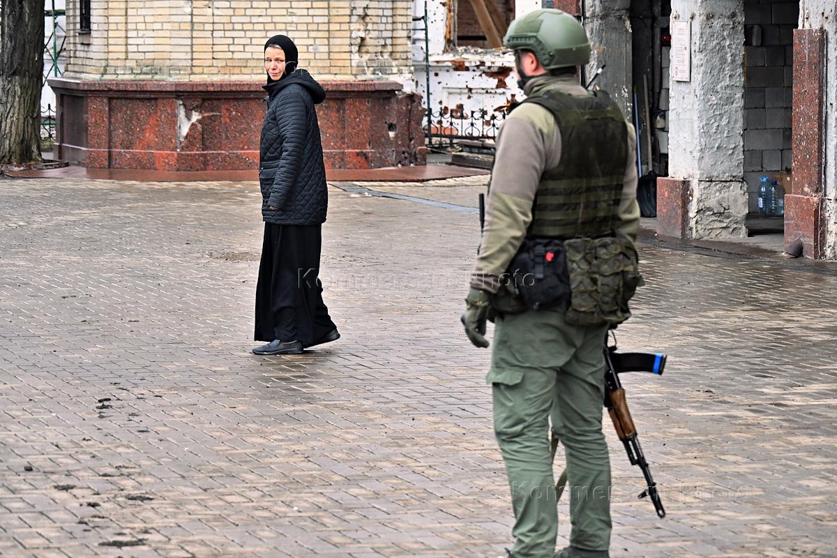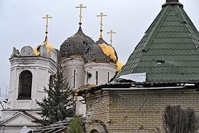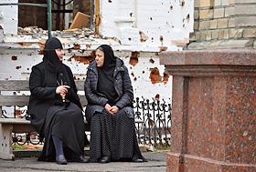 Свято-Успенский Николаевский женский монастырь. Жанровая фотография. Разрушенный от обстрелов храм…
