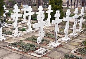 Свято-Успенский Николаевский женский монастырь. Следы обстрелов на могильных крестах.