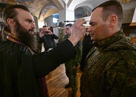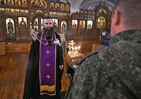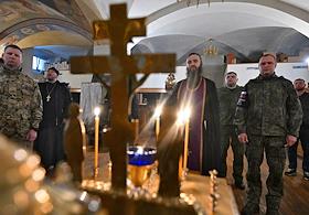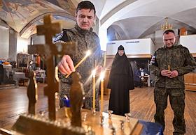 Свято-Успенский Николаевский женский монастырь. Военнослужащие во время церковной службы.