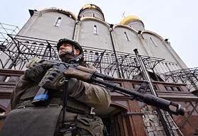 Свято-Успенский Николаевский женский монастырь. Военнослужащий на территории монастыря.