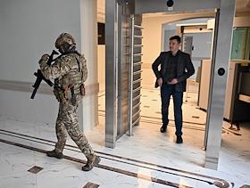 Жанровая фотография. Военнослужащий с оружием в здании.