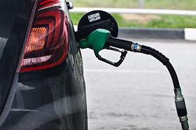 Жанровая фотография. Заправочный пистолет в бензобаке автомобиля.