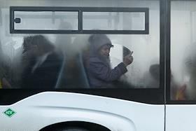 Жанровая фотография. Туман в городе. Пассажиры городского автобуса.