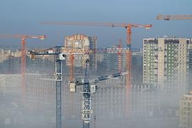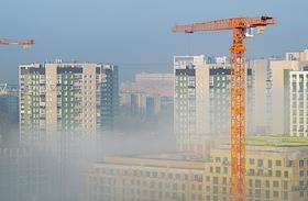 Жанровая фотография. Туман в городе. Строительство микрорайона "Кварталы Драверта" от строительной…