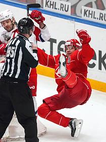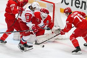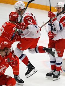 Спорт Континентальная Хоккейная Лига (КХЛ). Плей-офф 1/8 финала Кубка Гагарина. Матч между командами "Спартак" (Москва) - "Локомотив" (Ярославль) на стадионе "Мегаспорт".
