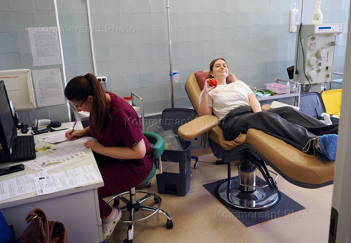 Жанровая фотография. Волонтеры на донорской акции с экскурсией по станции переливания в Клинической…