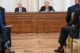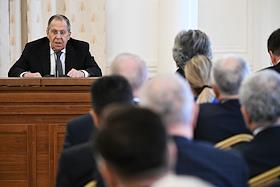 Министр иностранных дел России Сергей Лавров выступил на Общем собрании Российского совета по международным делам в Доме приемов МИД России.