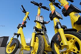 Жанровая фотография. Парковка электросамокатов в городе. Арендные электросамокаты компании "Яндекс…