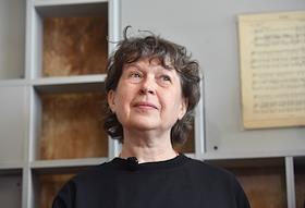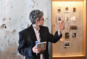 Пресс-показ выставки "Неполное собрание" в Музее ОБЭРИУ. Куратор выставки Ирина Горлова во время…