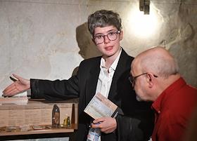 Пресс-показ выставки "Неполное собрание" в Музее ОБЭРИУ. Куратор выставки Юлия Сенина во время…
