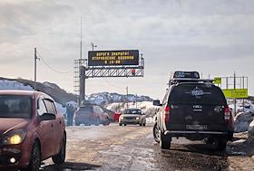 Виды Мурманской области. Жанровая фотография. Автомобили на дороге в поселок Териберка.