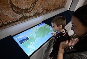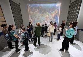 Выставка "Уроки географии" в Национальном центре "Россия". Посетители на выставке.