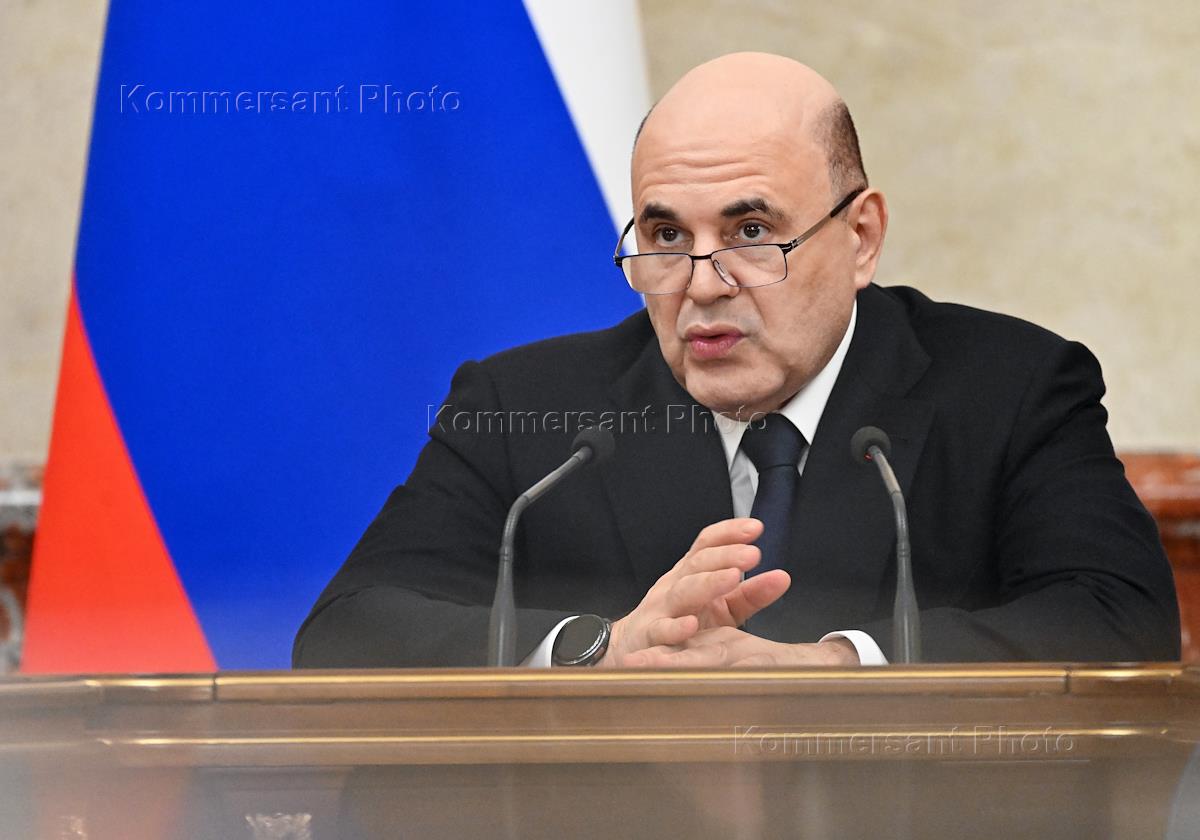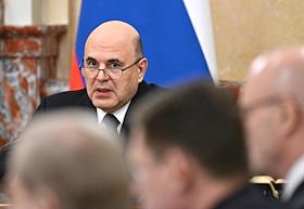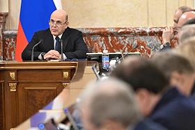 Заседание правительства России. Председатель правительства России Михаил Мишустин (в центре) во…