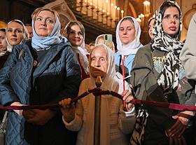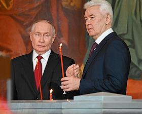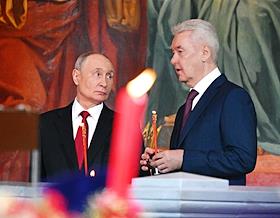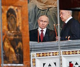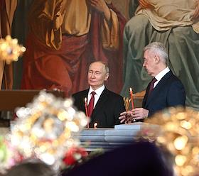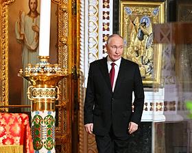 Праздничное Пасхальное богослужение в кафедральном соборном храме Христа Спасителя. Президент России…