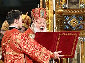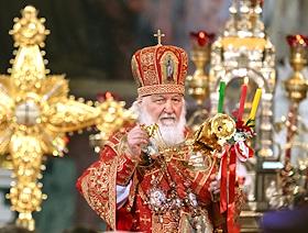 Праздничное Пасхальное богослужение в кафедральном соборном храме Христа Спасителя. Патриарх…