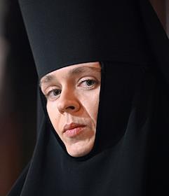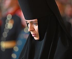 Праздничное Пасхальное богослужение в кафедральном соборном храме Христа Спасителя. Монахиня во…