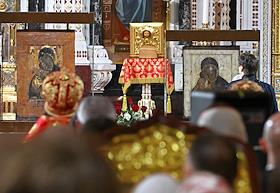 Праздничное Пасхальное богослужение в кафедральном соборном храме Христа Спасителя. Иконы —…