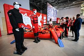 XVIII съезд Российского Красного Креста (РКК) на ВДНХ. Выставка на съезде. Предметы экипировки…
