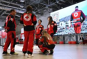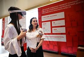 XVIII съезд Российского Красного Креста (РКК) на ВДНХ. Выставка на съезде. Участники на выставке.