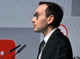 XVIII съезд Российского Красного Креста (РКК) на ВДНХ. Председатель РКК Павел Савчук на съезде.