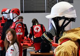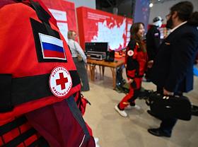XVIII съезд Российского Красного Креста (РКК) на ВДНХ. Выставка на съезде. Аптечка сотрудника РКК на…