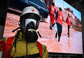 XVIII съезд Российского Красного Креста (РКК) на ВДНХ. Выставка на съезде. Эмблема РКК.