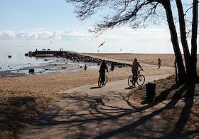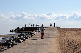 Виды Зеленогорска. Посетители пансионата "Северная Ривьера" на берегу Финского залива.
