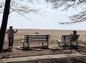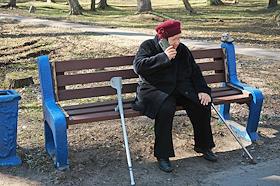 Виды Зеленогорска. Жанровая фотография. Пансионат "Северная Ривьера". Пожилая женщина на лавочке.