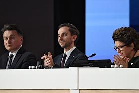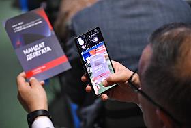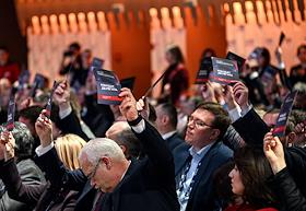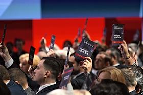 V Съезд Российского общества "Знание" в Национальном центре "Россия". Голосование участников съезда.
