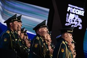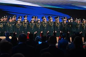 V Съезд Российского общества "Знание" в Национальном центре "Россия". Выступление военного хора на…