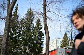 Виды Новосибирска. Жанровая фотография. Общественный туалет в парке.