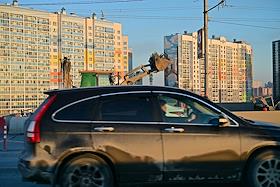 Виды Новосибирска. Жанровая фотография. Автомобиль на фоне жилых домов.
