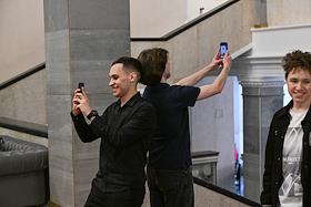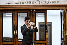 Пленарное заседание Государственной думы (ГД) России. Жанровая фотография. Молодые люди во время…