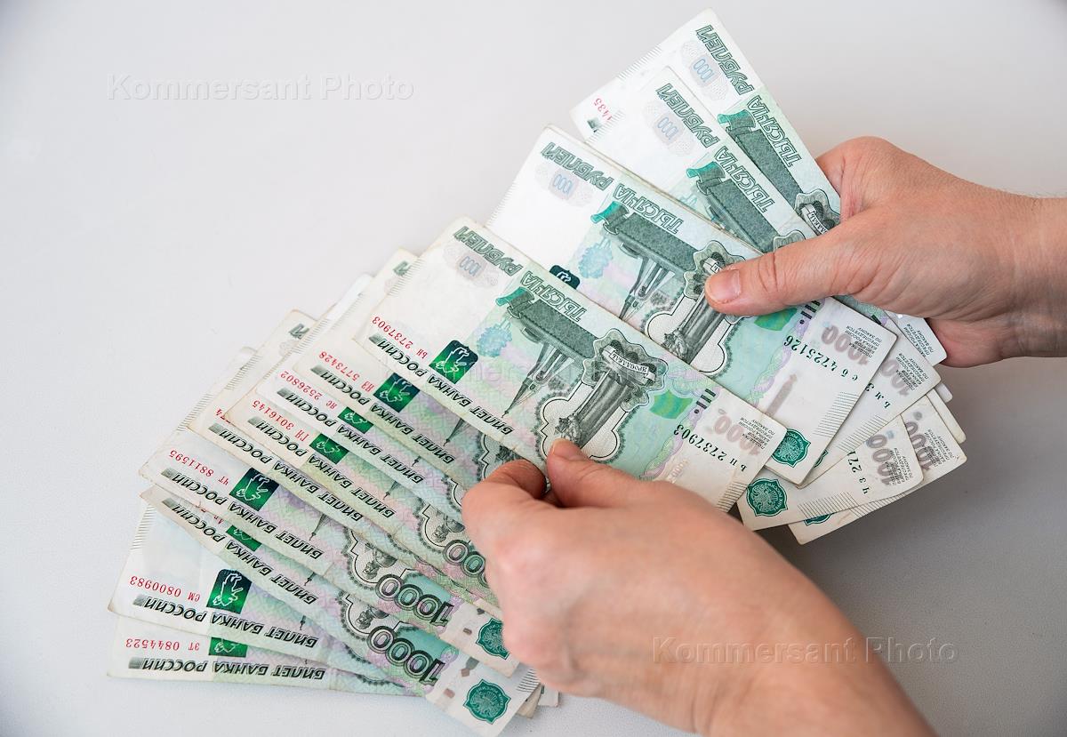 Жанровая фотография. Купюры достоинством 5000 рублей в руках.