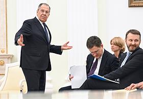 Президент России Владимир Путин и президент Сейшельских островов Патрик Эрмини во время встречи в Кремле.
