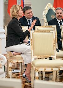 Президент России Владимир Путин (в центре), президент Сейшельских островов Патрик Эрмини (слева) и…
