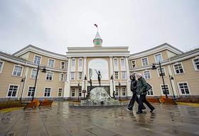 Виды Екатеринбурга. Территория Академического парка. Скульптура "Молодость на площади перед здание…