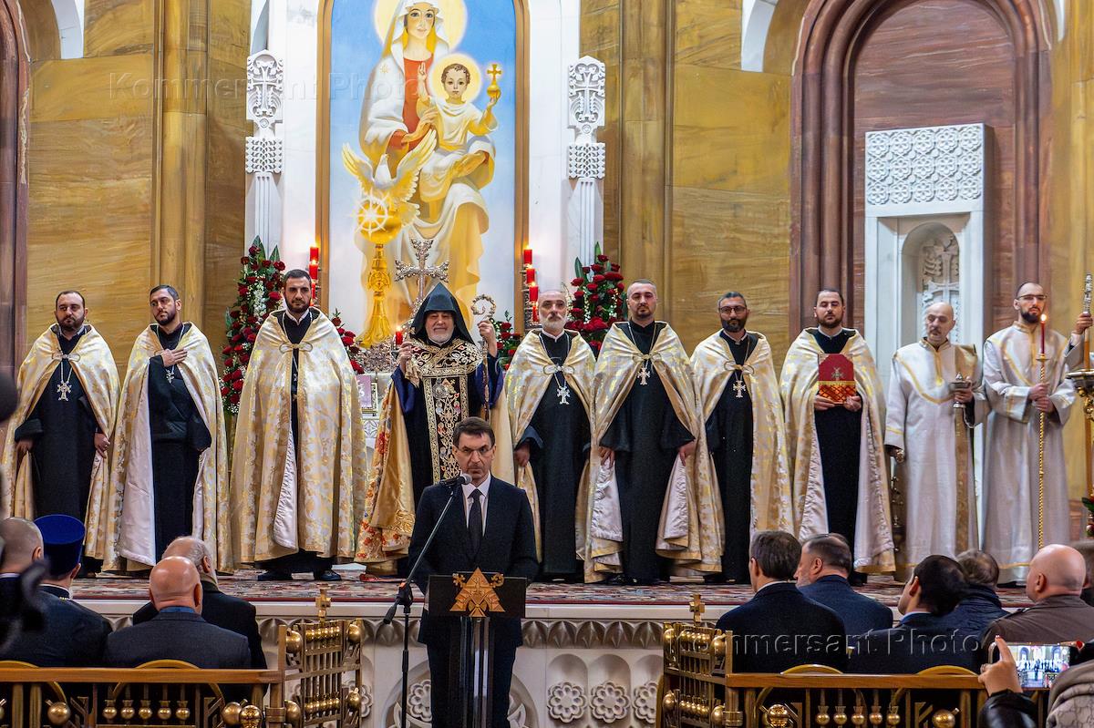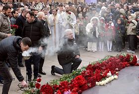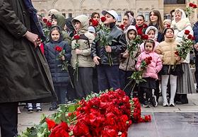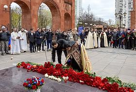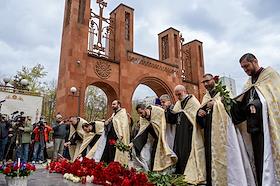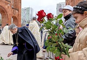 Общество Годовщина Геноцида армян 1915 года. Возложение цветов к мемориалу Геноцида армян и поминальная служба в Армянской апостольской церкви на Олимпийском проспекте.